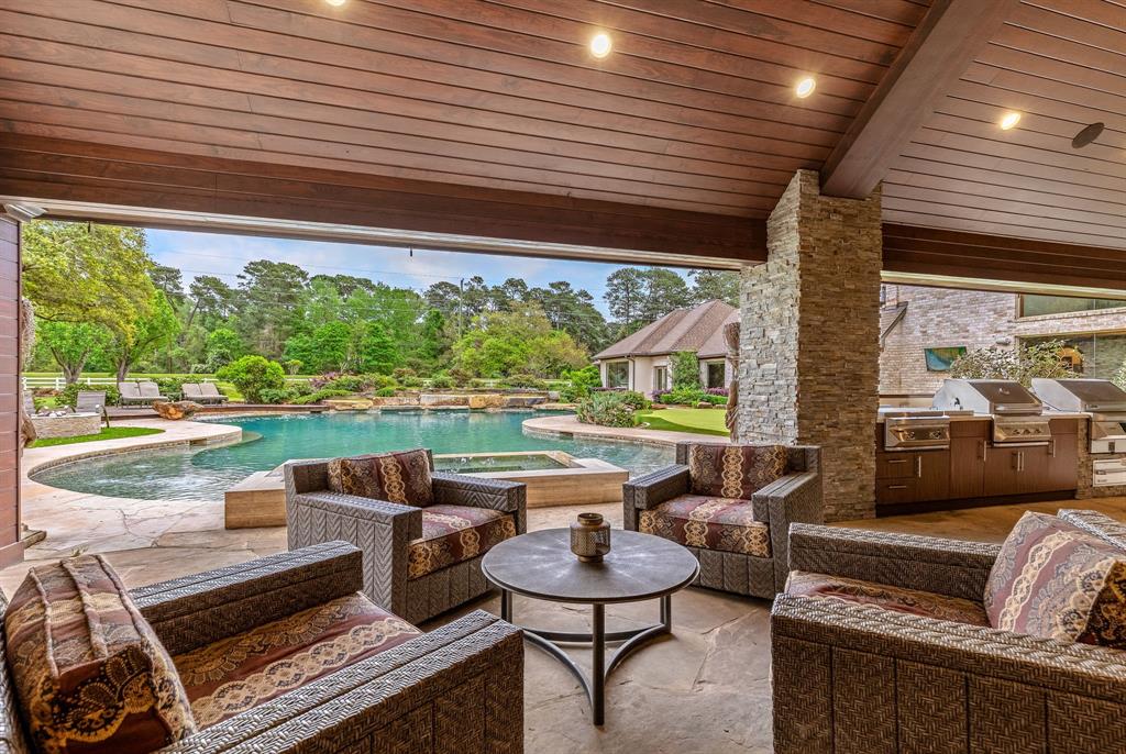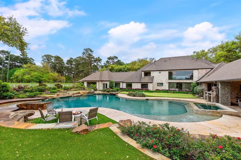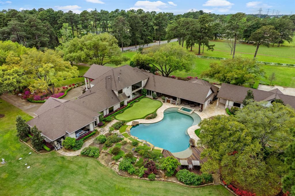 This Stunning retreat on 5.96 acres of peaceful beauty & privacy truly is a hidden jewel. The focal point of this estate is the 8120sqft main house boasting gourmet kitchen, high ceilings and abundant flexible living spaces. It includes 1st & 2nd fl primary suites, laundry areas attached to almost every bedroom, library/office, exercise room & more. Breathtaking outdoor living including full kitchen, pool, sunken trampoline, putting green and more.
